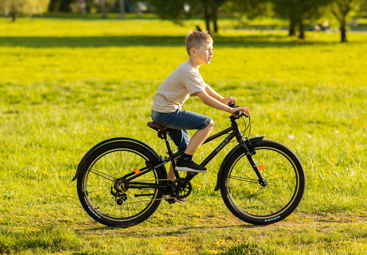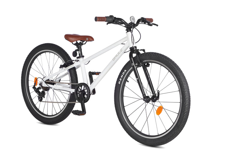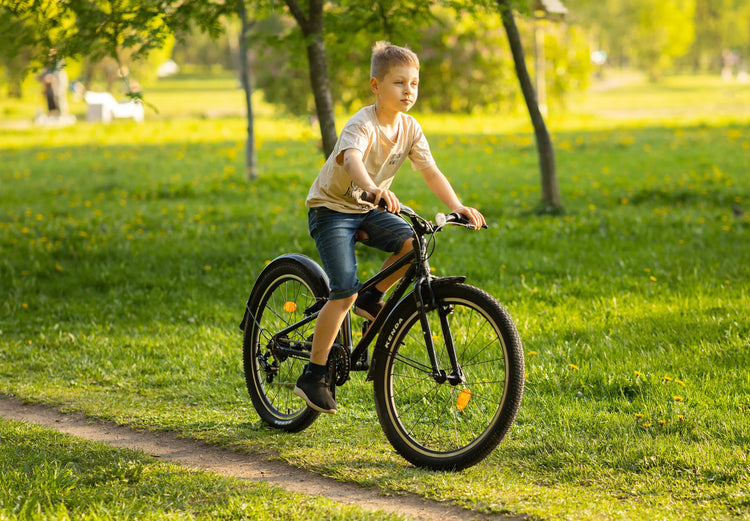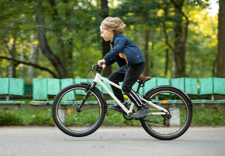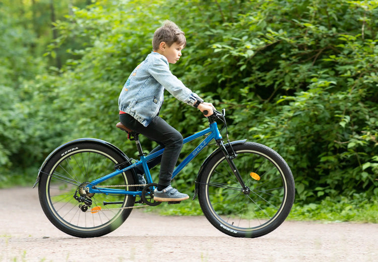 La altura del sillín se ajusta al crecimiento del niño, y las palancas de los frenos de llanta V-brake están adaptadas a sus dedos. Incluye reflectores y timbre, además de inscripciones reflectivas en el cuadro para que los jóvenes ciclistas sean aún más visibles en su recorrido.