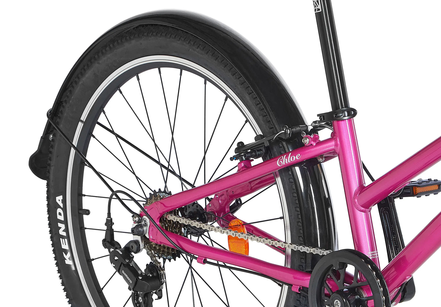 Chloe — la línea de bicicletas con cuadro bajo de aluminio para niños y adolescentes. Diseñamos esta estructura pensando en las niñas, pero la experiencia demostró que la Chloe también le gusta a los niños, gracias a su postura cómoda con una ligera inclinación hacia adelante. La Chloe está entre las bicicletas infantiles más livianas del mercado.