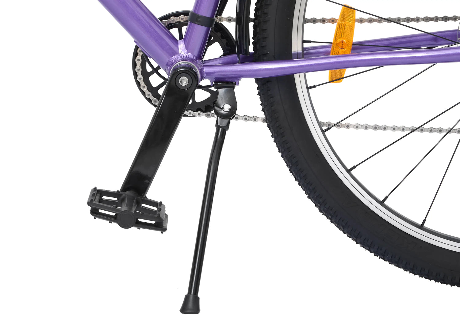 Esta bicicleta confiable y con buena capacidad todo terreno es apta para personas de 145 a 165 cm (con altura de sillín ajustable). Pesa apenas 12,5 kg y soporta una carga de hasta 80 kg. Incluye reflectores y timbre, además de inscripciones reflectivas en el cuadro.
