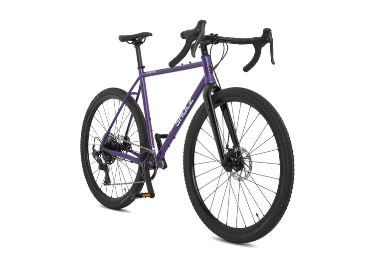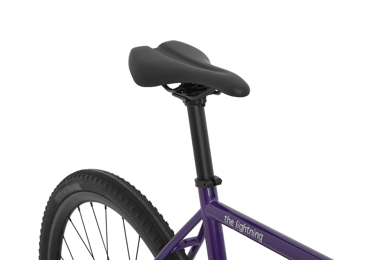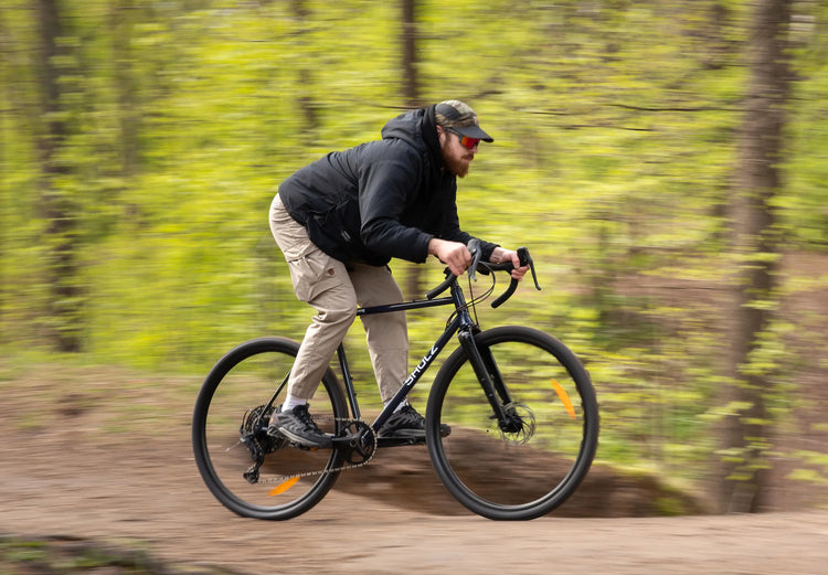 Una bicicleta gravel de cromóvil con horquilla de carbono, ruedas de 28″, frenos de disco y postura deportiva, para los amantes de un estilo de ciclismo moderno, dinámico y, posiblemente, exigente.